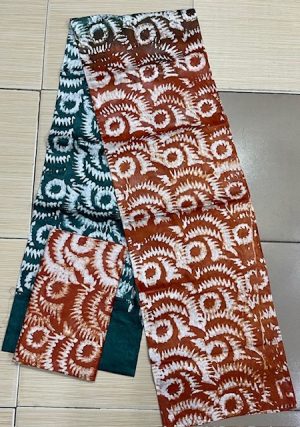 African Two-Tone Batik Brocade Fabric ? 5 Yards (Green & Orange)