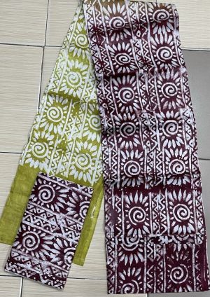 Authentic African Adire Tie and Dye Fabric 100% Cotton, 5 Yards (Green and Pink)