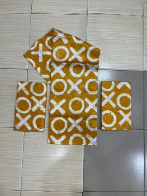 Beautiful Custard Yellow X and O Adire African Handmade Batik Brocade Fabric