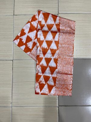 Tri-Color Special Batik Brocade Fabric Green, Pink & Orange (5 Yards)