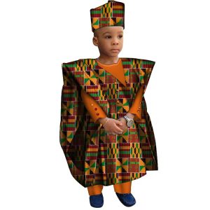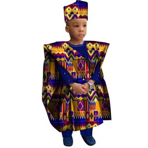 African Clothes with Hat Boy Tops and Pants African Print Clothes for Boys Bazin Riche Dashiki Gown Set