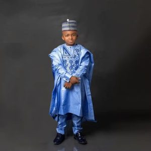 African Kids Boys Agbada Traditional Outfit 3pcs in Blue