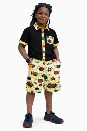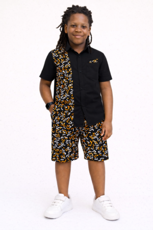 African Kids Boys 2-Piece Shirt and Shorts Set (Black/Yellow Multi)