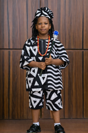 Boys’ 2-Piece African Print Vest and Shorts Set (Navy/White)
