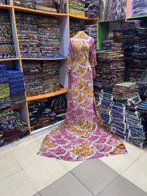 Adire Batik Chiffon Pink & Yellow Swirl
