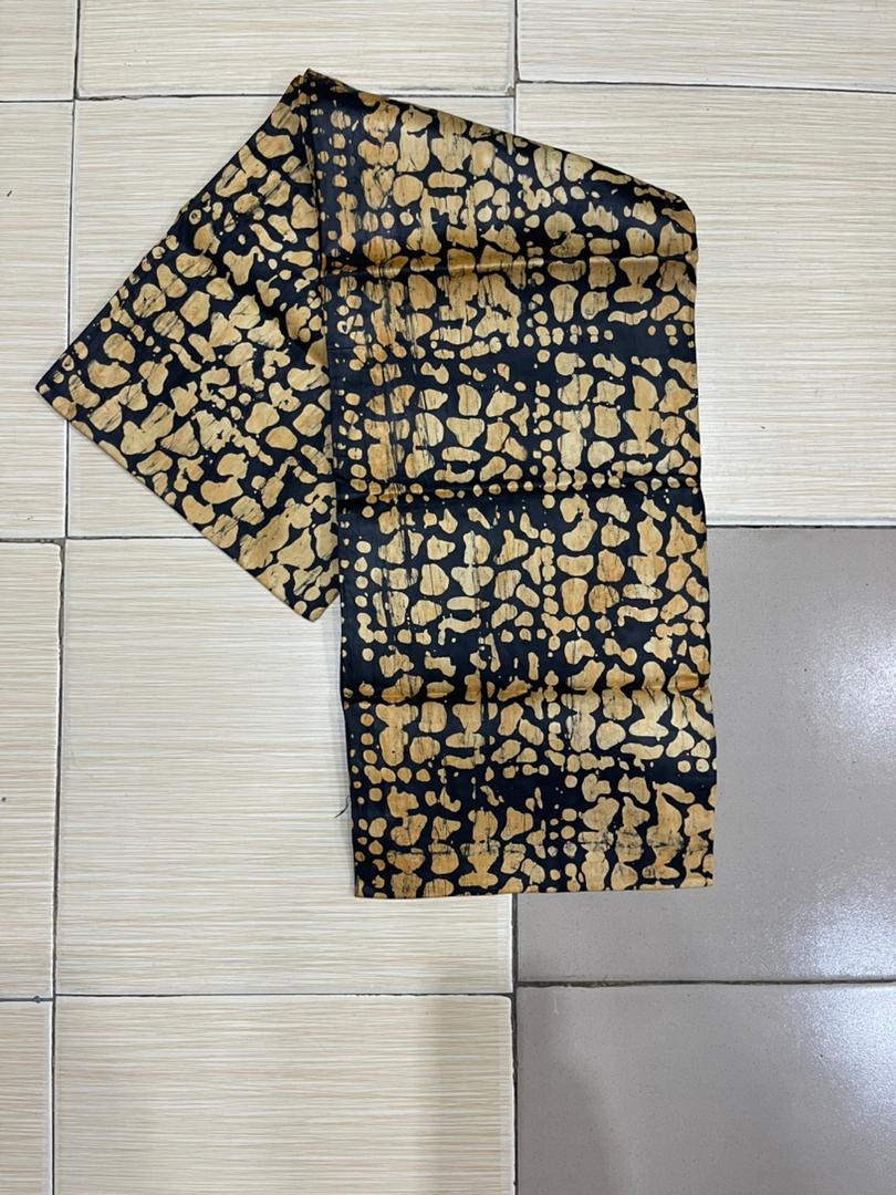 Elevate your style with this luxurious 5-yard Adire African Batik Brocade Fabric in a bold gold and black pattern. Hand-dyed using authentic batik techniques, this richly textured brocade fabric is perfect for crafting stunning traditional outfits, statement pieces, or unique home d?cor. The striking contrast of gold and black offers a regal and timeless look ideal for special occasions or standout fashion designs.
