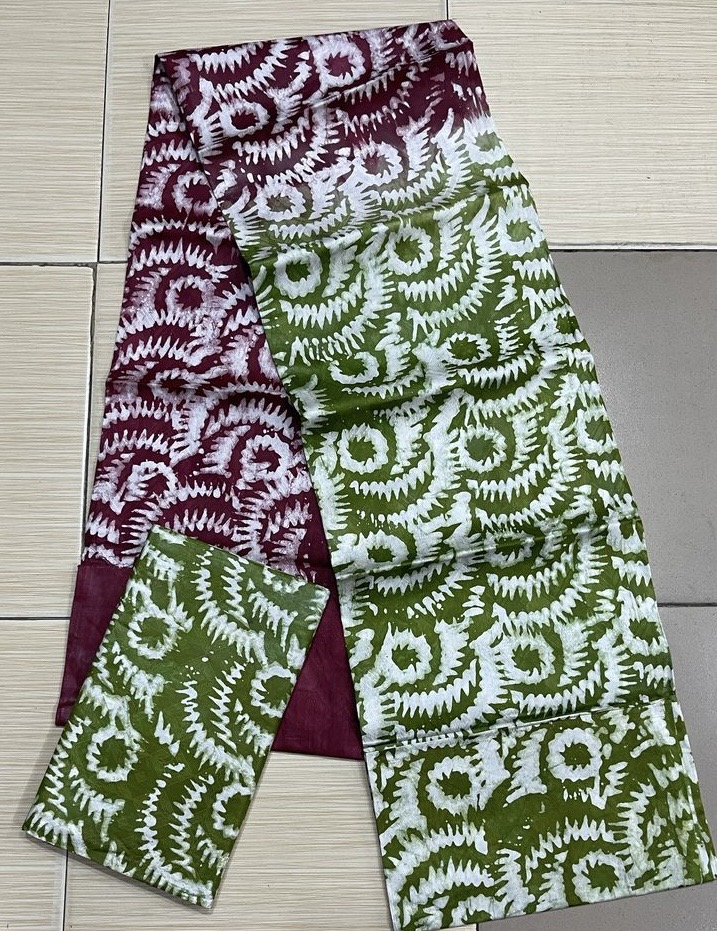 Elevate your fashion with this stunning African Two-Tone Batik Brocade Fabric in an eye-catching emerald green and gold combination. Handmade using the traditional Adire batik process, this 5-yard fabric is adorned with symbolic X-and-O motifs and a textured brocade finish. Perfect for custom dresses, formal attire, and cultural wear, its rich colors and authentic craftsmanship highlight the beauty of African textile heritage.