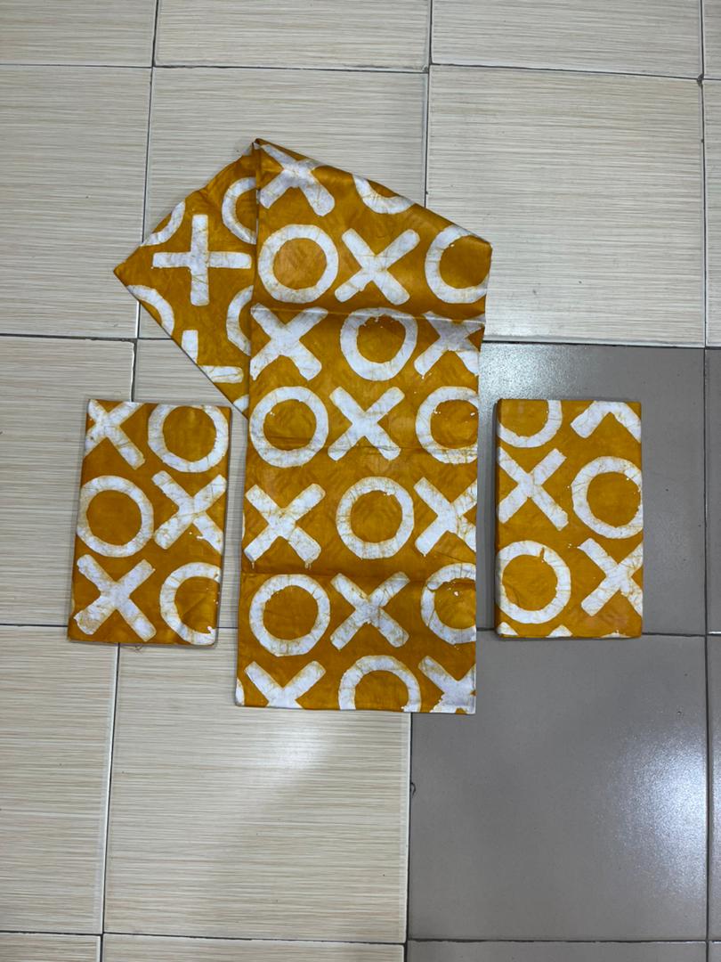 Infuse vibrant tradition into your creations with this Beautiful Custard Yellow X and O Adire Batik Brocade Fabric. Handcrafted using authentic African Adire techniques, this 5-yard fabric features striking X and O motifs in warm custard yellow tones. Its brocade texture adds a luxurious touch, making it ideal for creating standout garments, headwraps, or decorative pieces. Perfect for fashion designers and lovers of cultural expression, this fabric celebrates heritage, craftsmanship, and bold style in every thread.