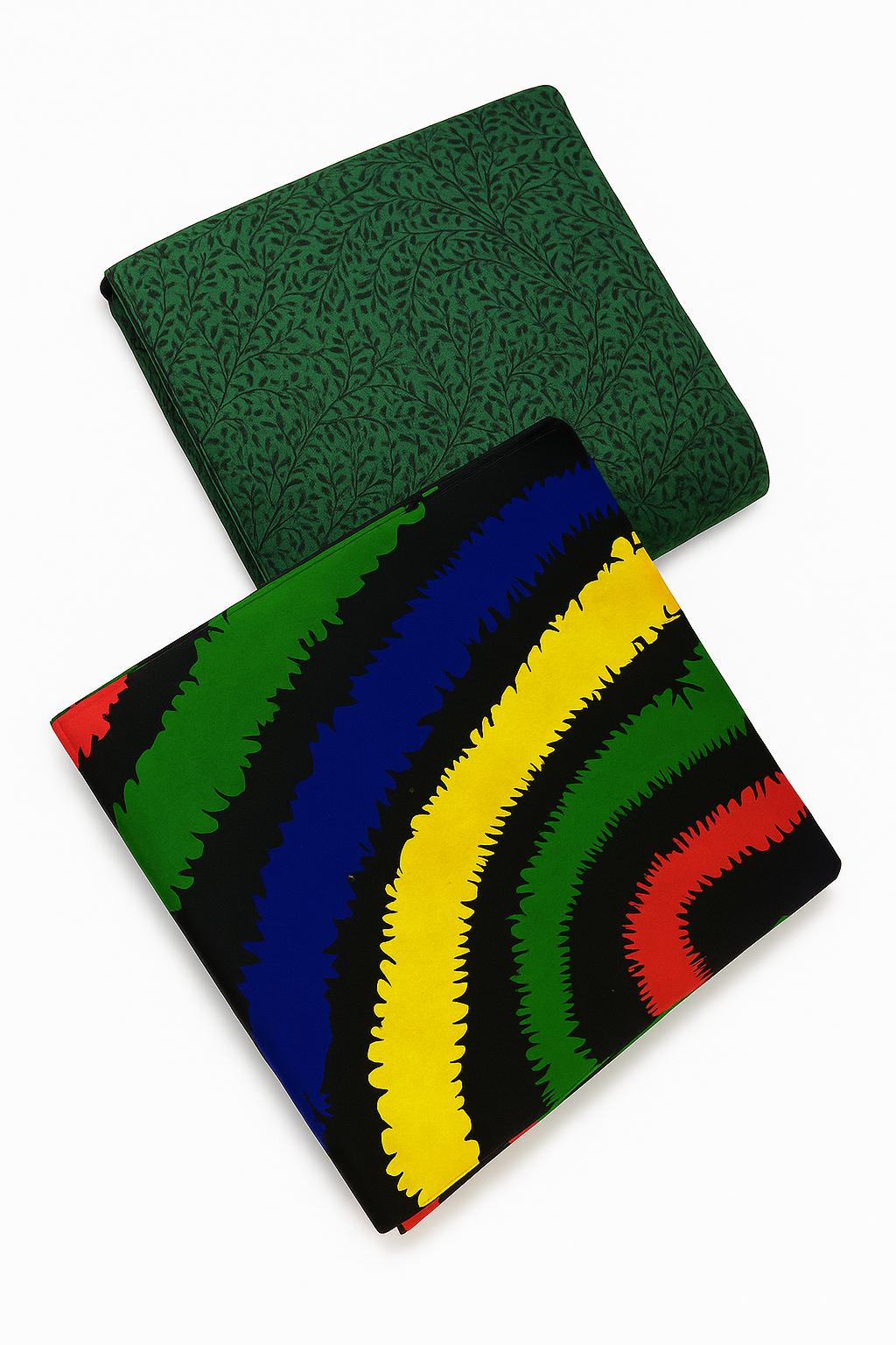 A sophisticated yet playful fabric pairing that combines earthy tones with bold, graphic stripes. A rich, tonal Forest Green featuring an intricate darker green leaf-and-branch vine motif for a textured, monochromatic look.