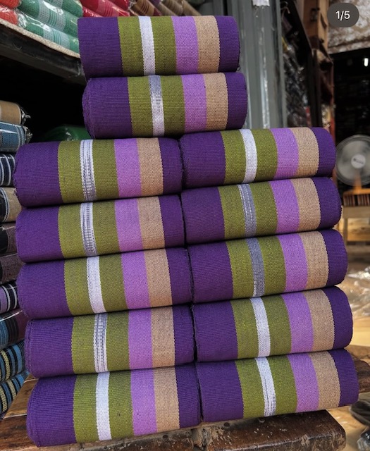 A beautiful blend of lavender, purple, and beige lines in this Nigerian Aso Oke bundle. Handwoven with precision, this fabric is perfect for creating elegant headties, wrappers, and ceremonial attire, adding a sophisticated touch to any special occasion.