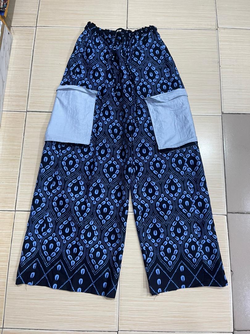 Celebrate the artistry of Yoruba heritage with our Osogbo Adire Wrap Trousers, intricately hand-dyed using traditional resist techniques from southwestern Nigeria. Each pair features a stunning indigo pattern—unique and rich in cultural narrative—set against a relaxed, breezy silhouette. Designed with a wrap-style waist secured with a tie, these trousers offer both comfort and effortless elegance. Ideal for casual wear, lounging, or styled up for statement-making looks.