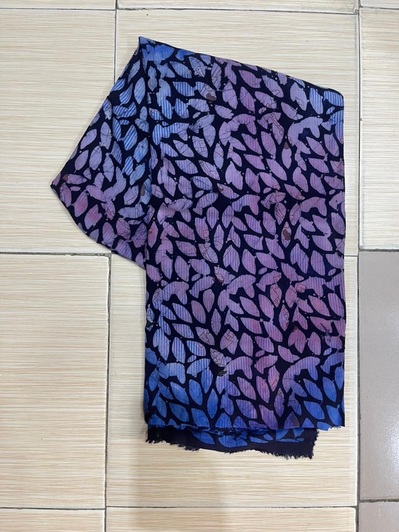 Crafted with intricate patterns in purple, black, and rich navy tones, this 5-yard Adire Crepe fabric is ideal for elegant traditional attire. Its soft, breathable texture makes it perfect for all-day wear at cultural events or stylish custom tailoring.