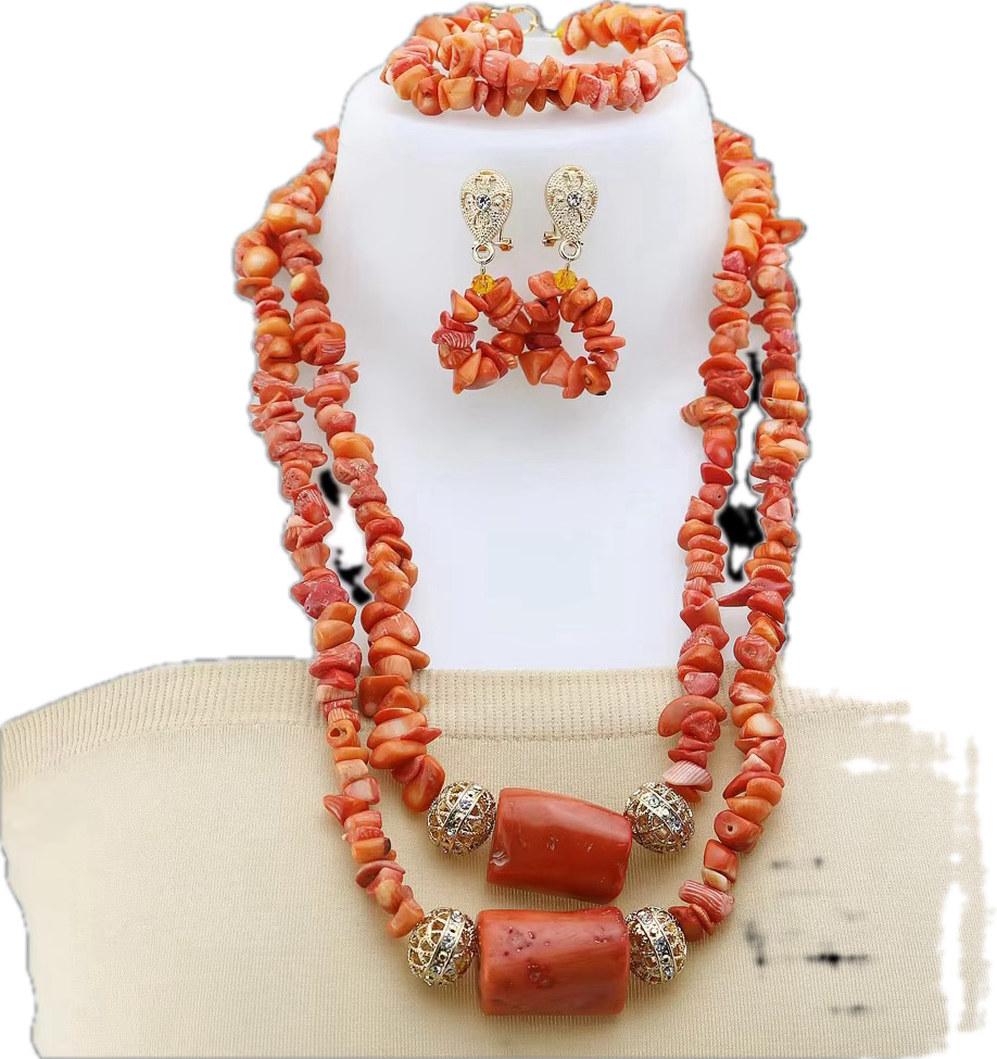 A bold and sophisticated coral bead set featuring a twisted multi-strand design. Perfect for traditional African events, weddings, or festive gatherings, this piece adds a regal charm to any attire.