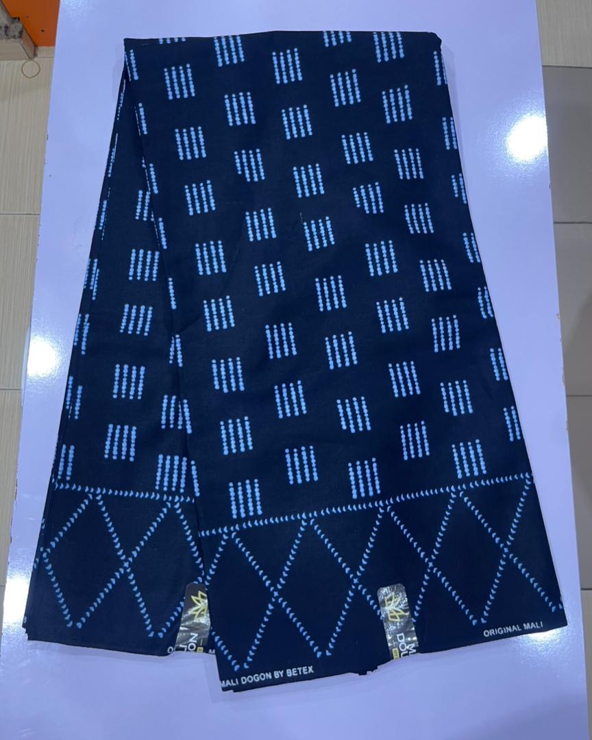 This 6-yard Mali tie-dye fabric features a warm sky blue and royal blue radiant circle pattern, hand-dyed on premium 100% cotton. Perfect for traditional clothing, full-length garments, décor accents, or creative projects, it reflects the vibrant soul of African craftsmanship. Each piece is uniquely handcrafted, offering bold design and cultural richness.
