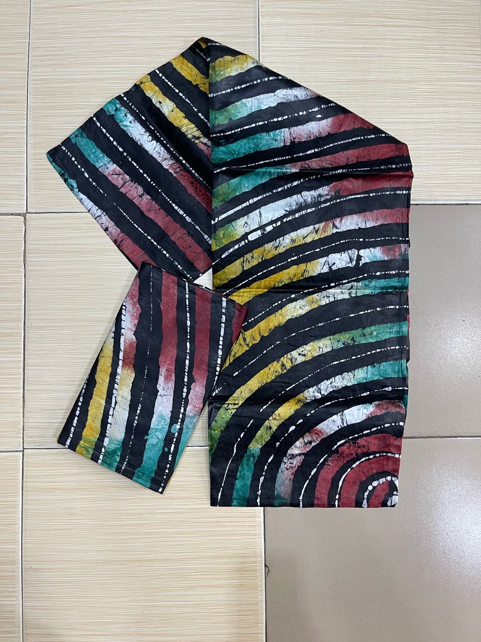 Elevate your wardrobe with this stunning 5-yard Tri-Color Batik Brocade featuring a vibrant fusion of blue, green, and gold. This rich and durable fabric showcases intricate patterns and a silky texture, making it ideal for ceremonial wear, traditional attire, and bespoke designs that command attention and elegance.